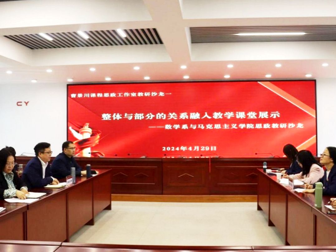 4月29日下午,beat365在南校办公楼1号会议室联合举办曹景川课程思政工作室教研沙龙。马克思主义学院(筹)和数学系党政负责人及部分教师参加活动。