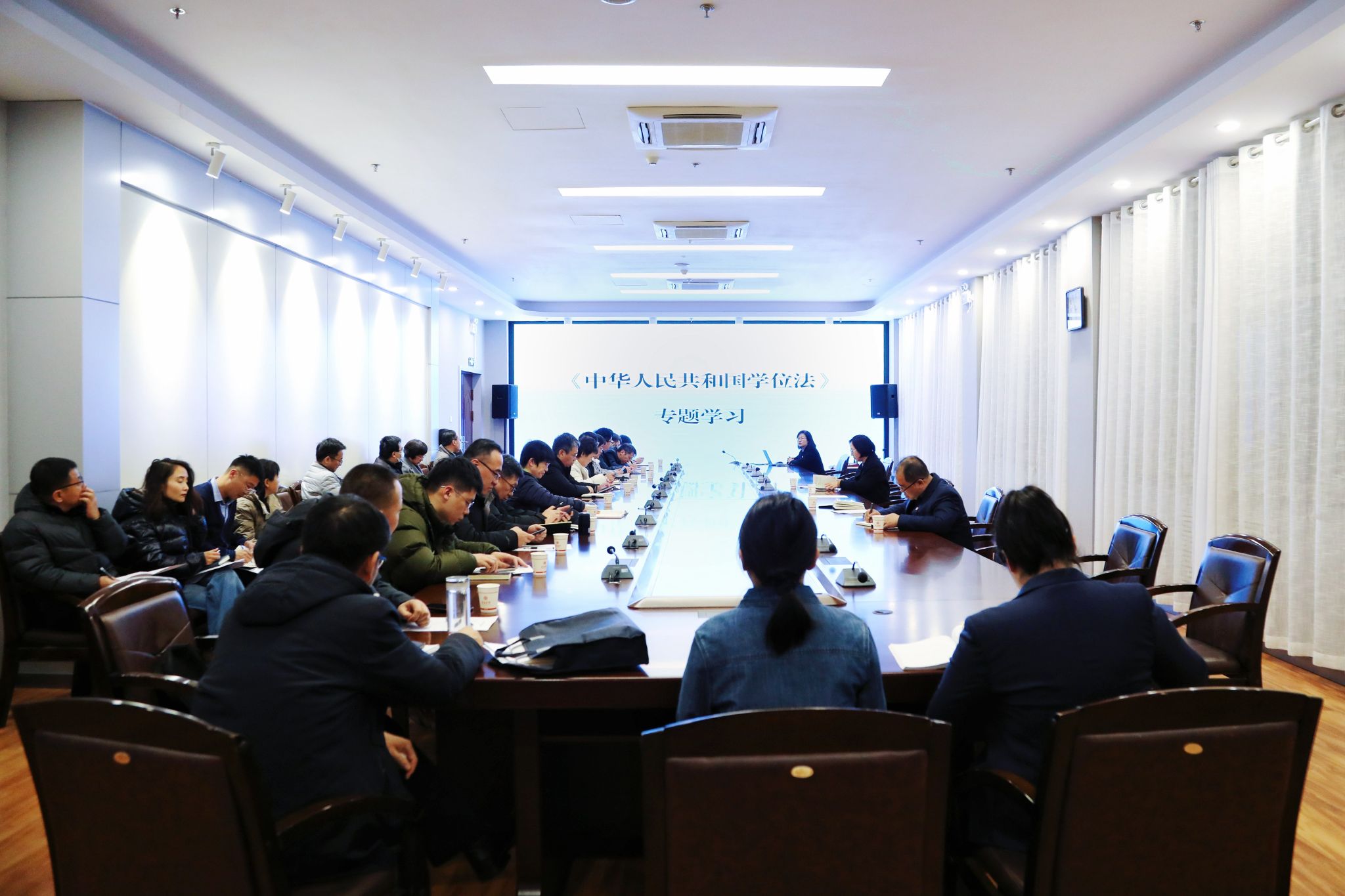1月3日下午,beat365在1号教学楼10层中会议室召开《中华人民共和国学位法》集中专题学习,进一步提升学位管理工作育人水平。校学位评定委员会成员、各系主任、教学副主任和教务部全体人员参加会议。教务部部长李伟英主持会议。