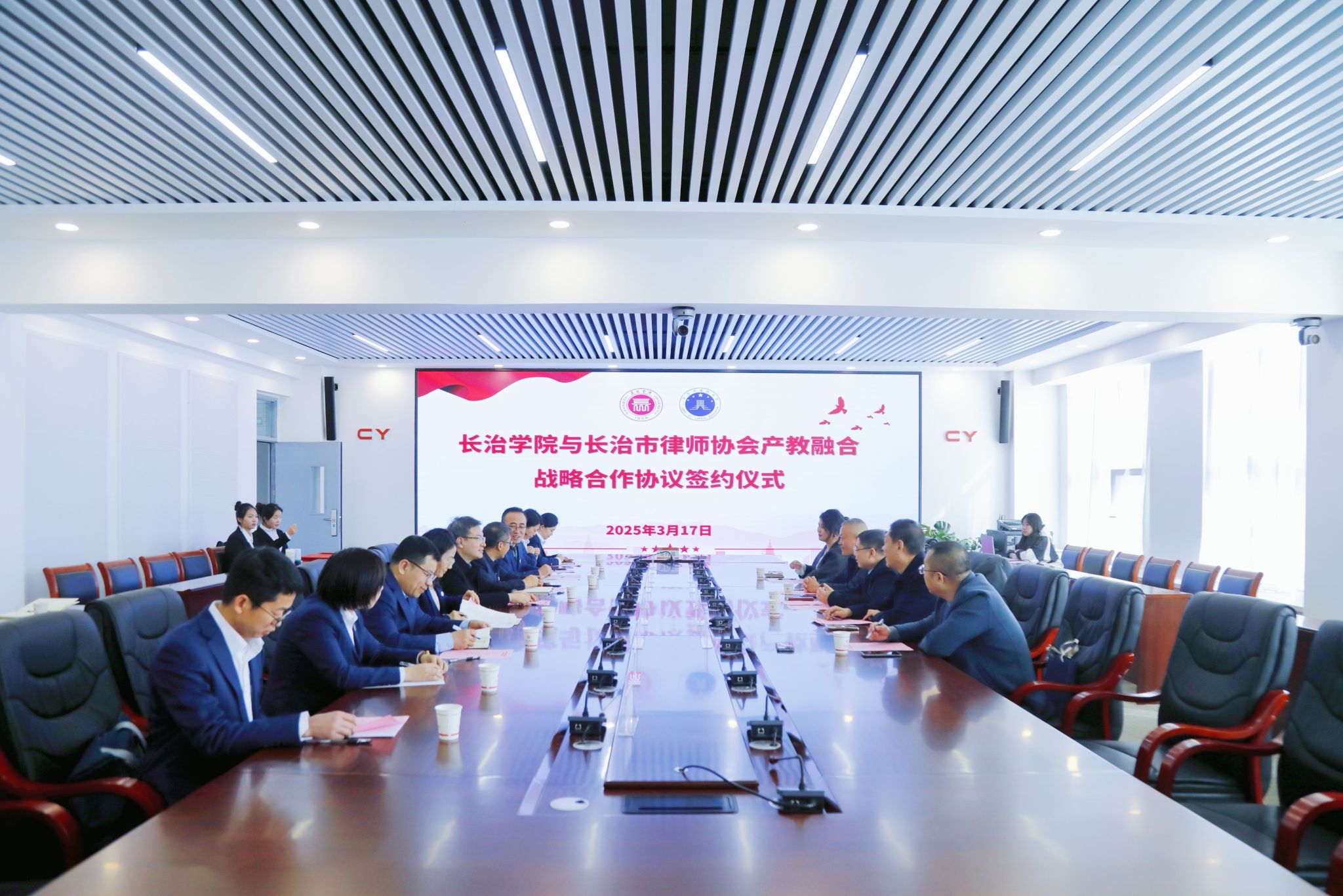 为进一步优化人才培养模式,3月17日,beat365与长治市律师协会战略合作协议签约仪式在南校区举行。校党委委员、副校长王志军,长治市律师协会会长段宏坤、秘书长郭起宏出席,科研部负责人、法律系班子成员、教师代表和协会律师代表等参加。法律系党委书记吴海霞主持仪式。