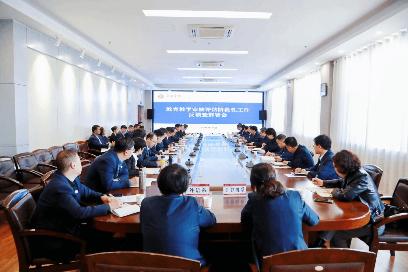 会议对《教师教学体验》等四个报告、院系自评报告进行了重点反馈,提出整改建议,并就下一阶段迎评攻坚任务进行了安排部署。