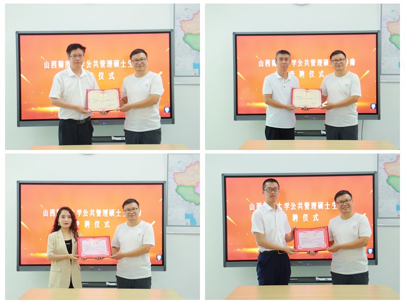 受聘仪式上,岳强宣读了受聘导师名单,并表示此次聘用仪式将进一步加强山西师范大学MPA师资队伍建设,提升人才培养质量。岳强为新聘导师颁发了聘书。