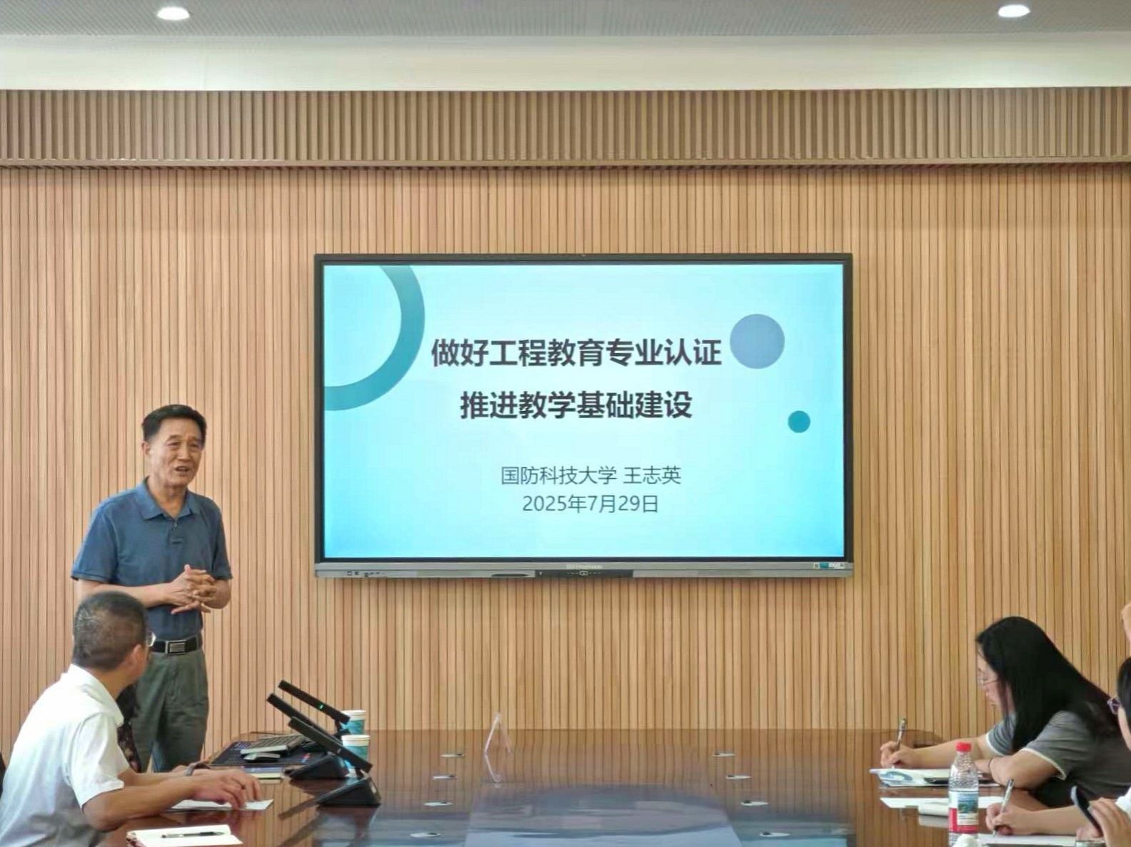 会议特邀国防科技大学王志英教授作《做好工程教育专业认证——推进教学基础建设》专题讲座。王志英教授结合丰富教育教学经验,围绕认证的三大核心理念、培养方案体系设计、毕业要求及观测点分解、课程体系建设、目标导向的持续改进等内容展开讲解,为全系教师深化认证标准理解、提升教学环节规范性提供指导。