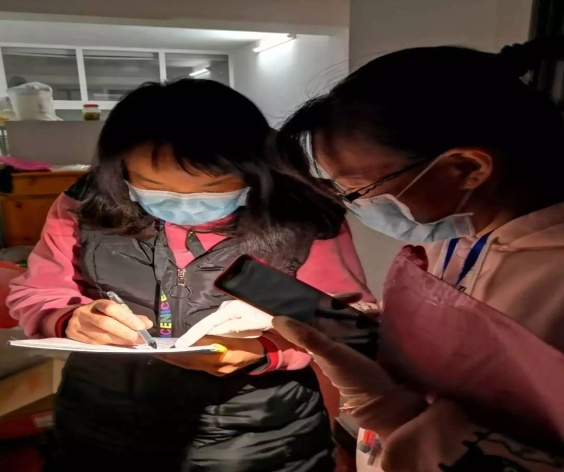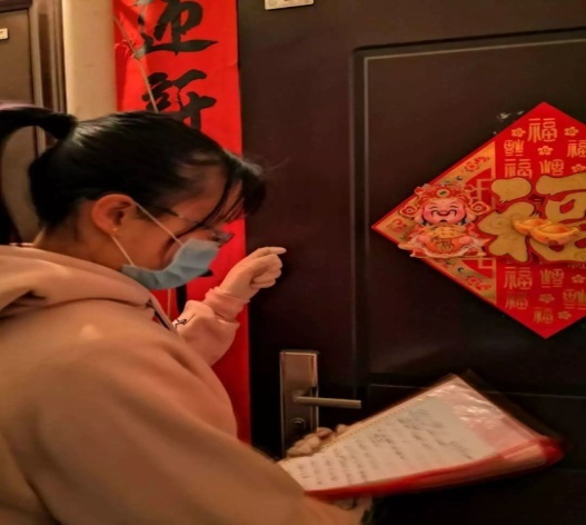 汉语1904班的刘悦绚同学:自愿参加社区疫情防控工作,协助社区防疫工作人员挨家挨户登记居民信息。通过这次抗击疫情活动,她说:“走进千家万户,体味责任担当,尽管大家都戴着口罩,但所有居民都心手相连,积极配合。没有一个冬天不可逾越,没有一个春天不会到来,在此向所有负重前行的一线工作者致敬!相信我们一定会共克难关!