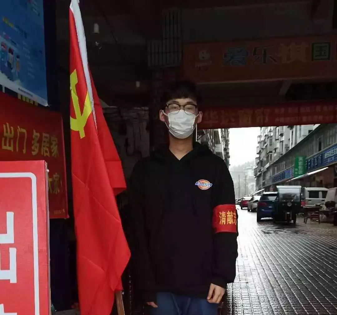 汉语1602班的丁古岳同学:自愿参加社区疫情防控工作,协助社区防疫工作人员管理居民进出信息登记。通过这次抗击疫情活动,他说:“我作为一名学生党员,应当为疫情贡献我的绵薄之力,只要我们共同努力,这场没有硝烟的战争一定能胜利”。