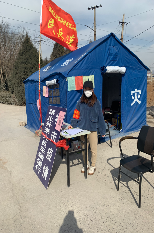 学前1701班的郑双双是学生,1月26日起,她就在村口防控疫情站点值班。村里只有两名固定的工作人员值守,为了让他们能有吃饭和短暂休息的时间,她作为志愿者在午饭和晚饭时间参与值班工作,做好出入登记、劝返外来车辆和人员等工作。她说,“作为一名共青团员,有责任和义务为疫情防控工作贡献一份微薄的力量。我相信,在党和政府的领导下,我们一定能打赢这场疫情防控阻击战”。