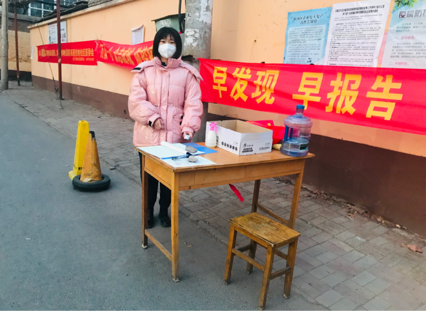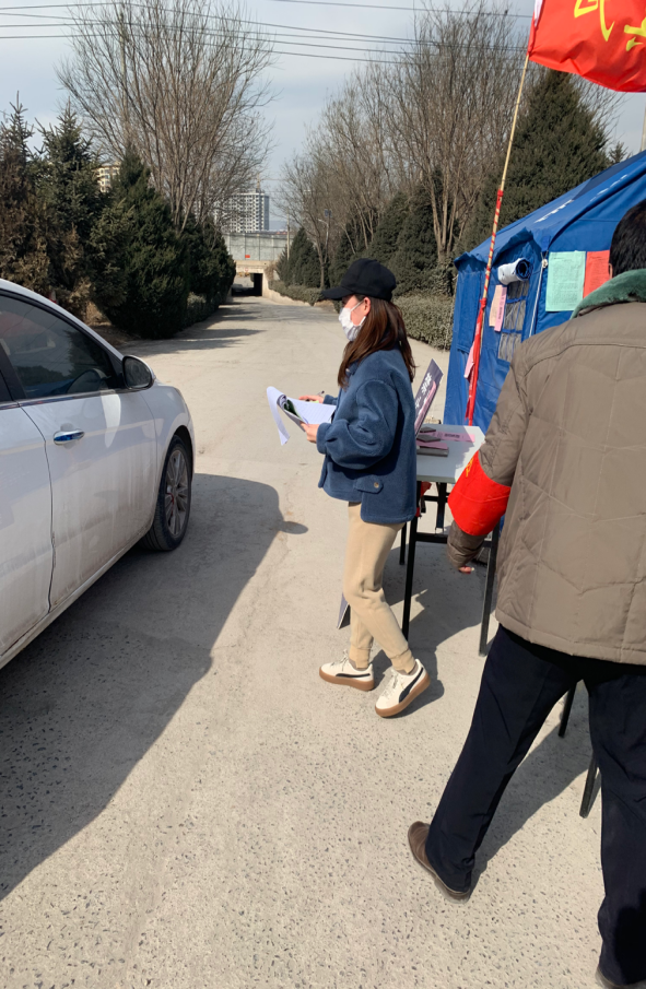 学前19专升本2班的曹洋担任社区志愿者期间,与村内党员和志愿者轮流换班上岗,负责进出车辆人员登记和测量体温及疫情防控知识的宣传,劝返不符合通行条件的人员车辆。她说:“我的大伯也参加了防控工作,尽管冬日寒风呼啸,我们依然坚守在村口,相互鼓劲,毫无怨言。我会一直把疫情防控志愿服务工作坚持到底,用自己的实际行动为保障家乡人民身体健康奉献自己的一份力量。”