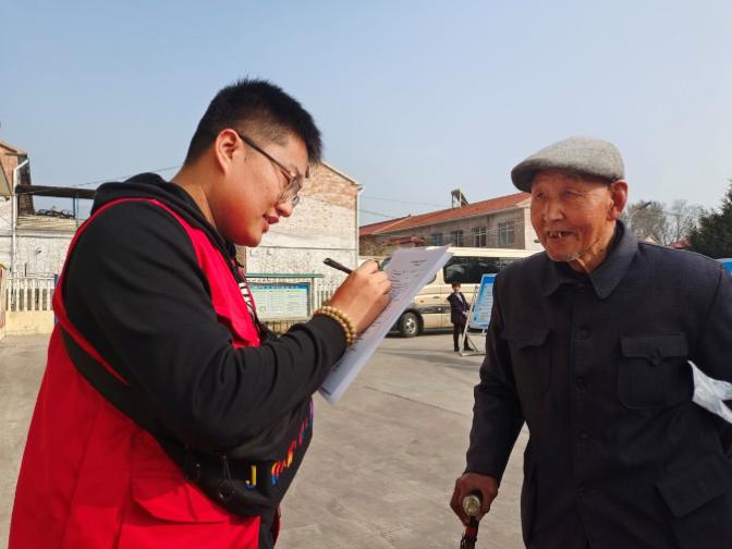 在大堡头镇南张村,调研团队与南张村村干部成员就乡村移风易俗中的现行举措、村民意愿、存在问题以及解决措施等进行了深入探讨,党员志愿者对南张村的村民进行了走访调查。通过调查问卷了解到村民们对乡村移风易俗的看法以及关于整改工作的满意程度。