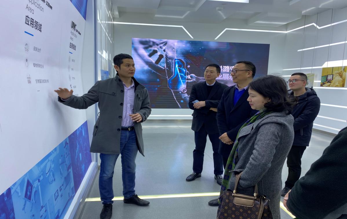 中科潞安紫外光电科技有限公司总经理闫建昌、副总经理蔡永强、段瑞飞等领导热情接待了刘建伟主任一行。闫建昌向到访的老师们介绍了公司概况、公司文化、发展历程、专利转化情况和深紫外LED广泛的应用场景,同时展示了紫外线变频空调、紫外线滚筒洗衣机等产品。