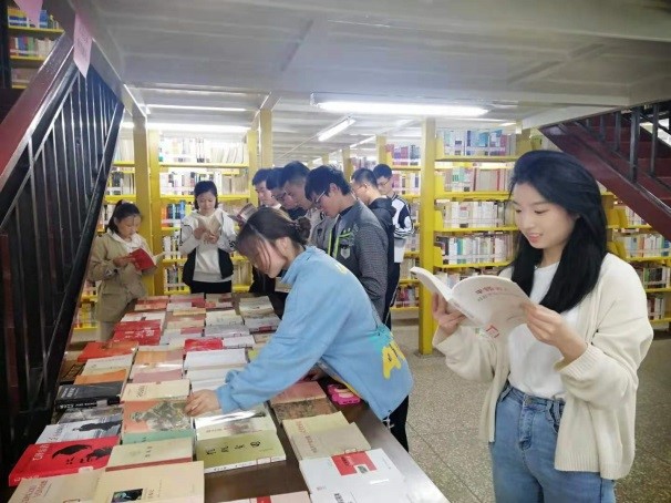 4月20日下午,朗读者协会成员集聚南校区图书馆诵读《可爱的中国》和《沁园春·雪》。与此同时,图书馆结合自身实际,充分挖掘资源,开展经典党史书籍书目推荐活动,发动师生共同学习党的历史,继承党的精神,践行“学史明理、学史增信、学史崇德、学史力行”目标要求,深情献礼党的百年华诞。不少同学在党史学习教育主题图书展专区认真翻阅书籍,本次共展出有关党史、革命史、党建、政治修养、国情读本、人物传记等多个主题的馆藏图书约100册。其中《摆脱贫困》、《毛泽东传》、《中国为什么有前途》、《平语近人》深受同学们喜爱。