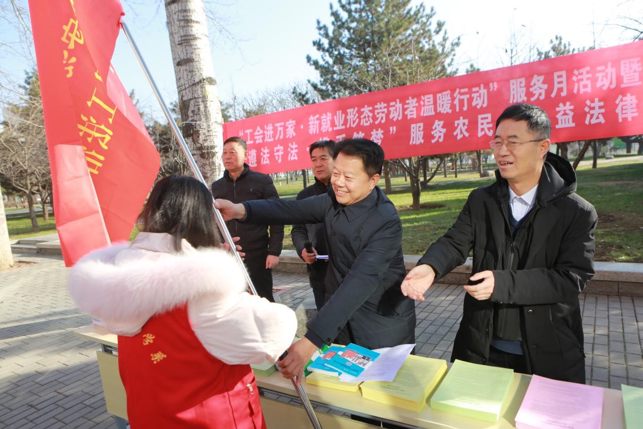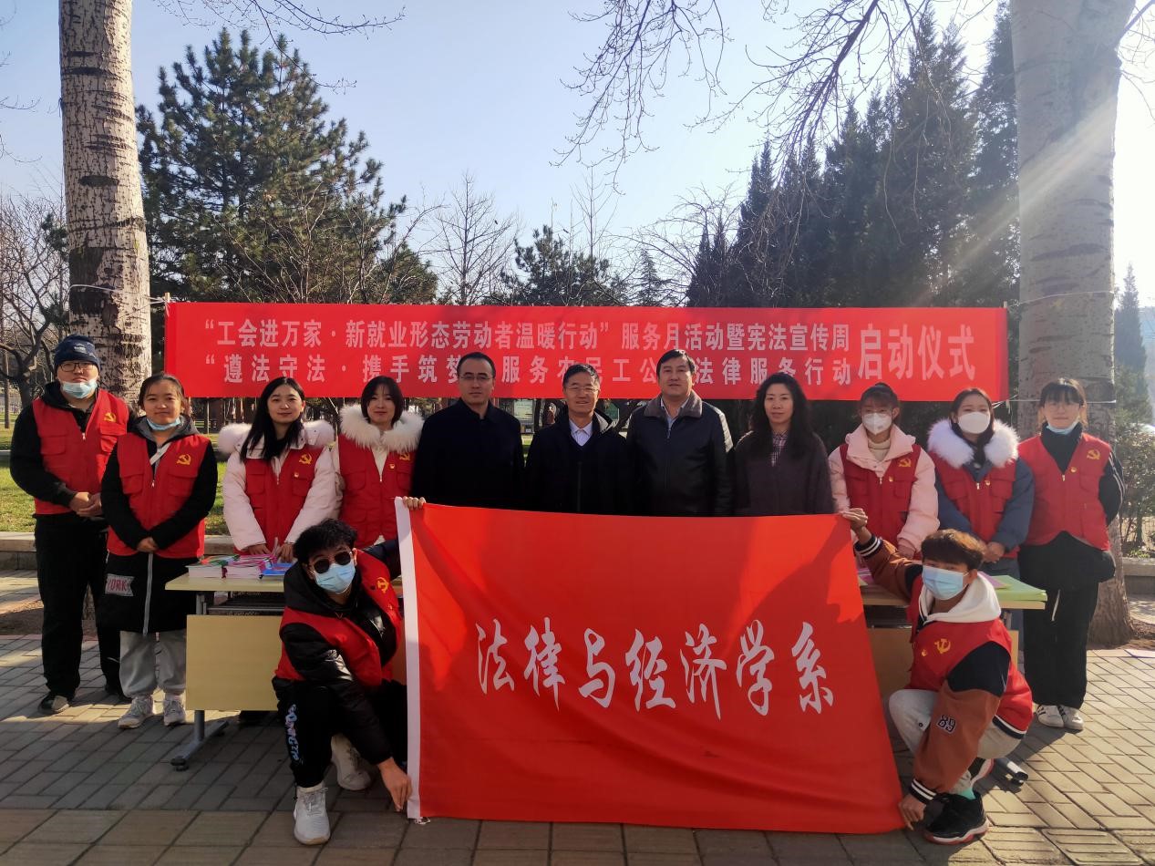 11月26日,法律与经济学系法律服务队与潞州区总工会联合开展了“遵法守法·携手筑梦”服务农民工公益法律服务行动启动仪式。长治市总工会副主席闫培俊,beat365亚洲体育官方网站工会主席李俊清,法律与经济学系党委书记段浩,法律与经济学系青年教师代表和学生代表参加活动。