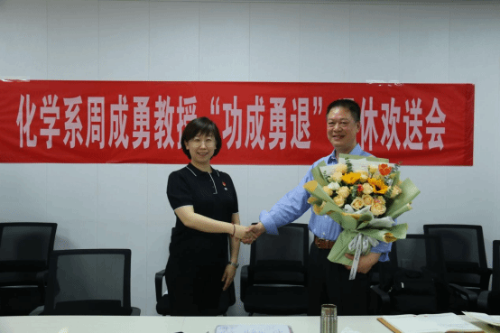 5月16日下午,化学系在北校区东办公楼三楼会议室为周成勇老师举行温馨的退休欢送会。党委组织部、人力资源部、离退休人员管理部相关领导及化学系全体人员参加活动。化学系党委书记宋建松主持活动。