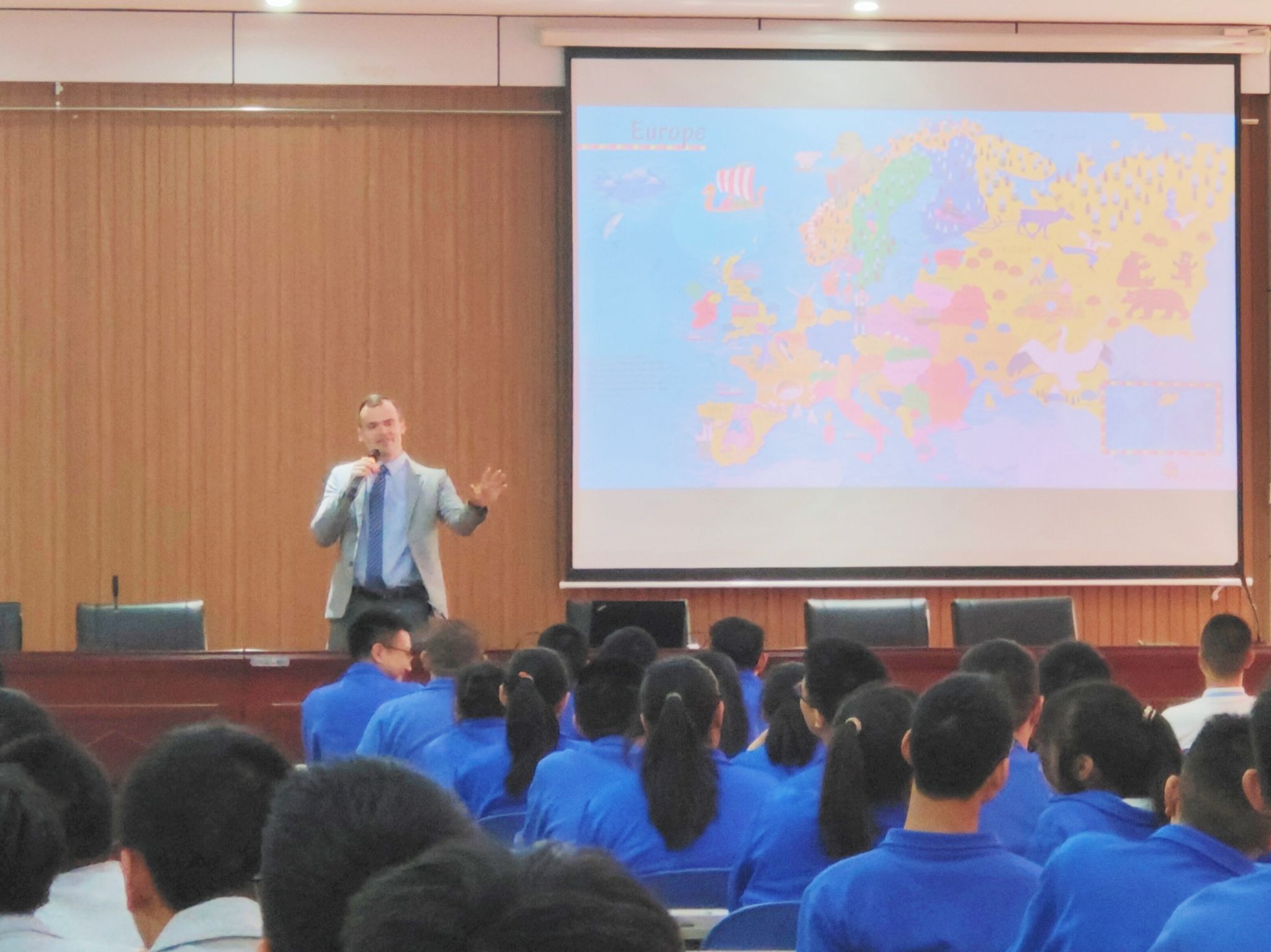 beat365波兰籍教师Voitek以精彩有趣的图片和视频引入课堂,结合自己学习中文的亲身体会,以生动精彩的讲解和幽默诙谐的授课风格,针对师生们普遍关注的英语学习中的困惑,向大家推荐了“勇于犯错”、“通过英语电影、英文歌曲等学英语”、“交流比语法更重要”等十条学好英语的建议,课堂上不时发出阵阵掌声。