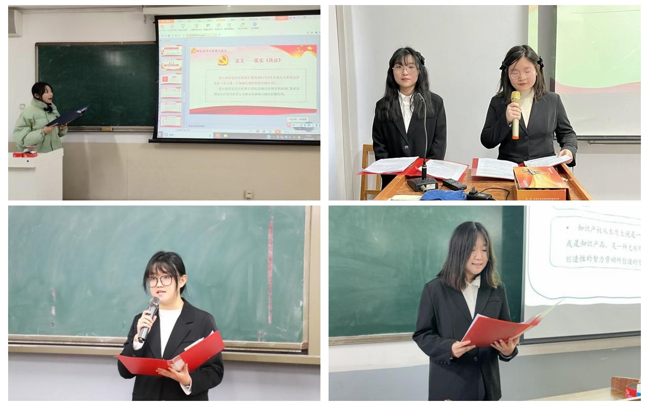 法律与经济学系组建学生法治宣讲团开展“宪法进课堂”主题宣讲活动。活动为期一个月,开展宣讲场次7场,覆盖南北两个校区近700名师生,宣讲内容涵盖了宪法、民法典、国际法、知识产权法、侵权责任法五个专题,有效为师生普及了宪法知识,让宪法进课堂、入人心,营造了良好的宪法宣传校园氛围。