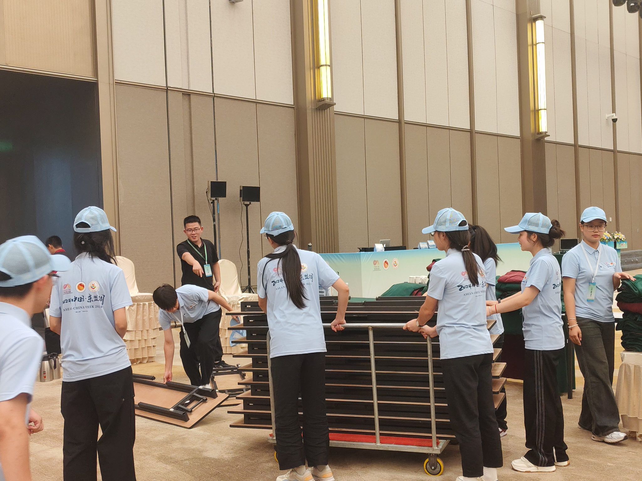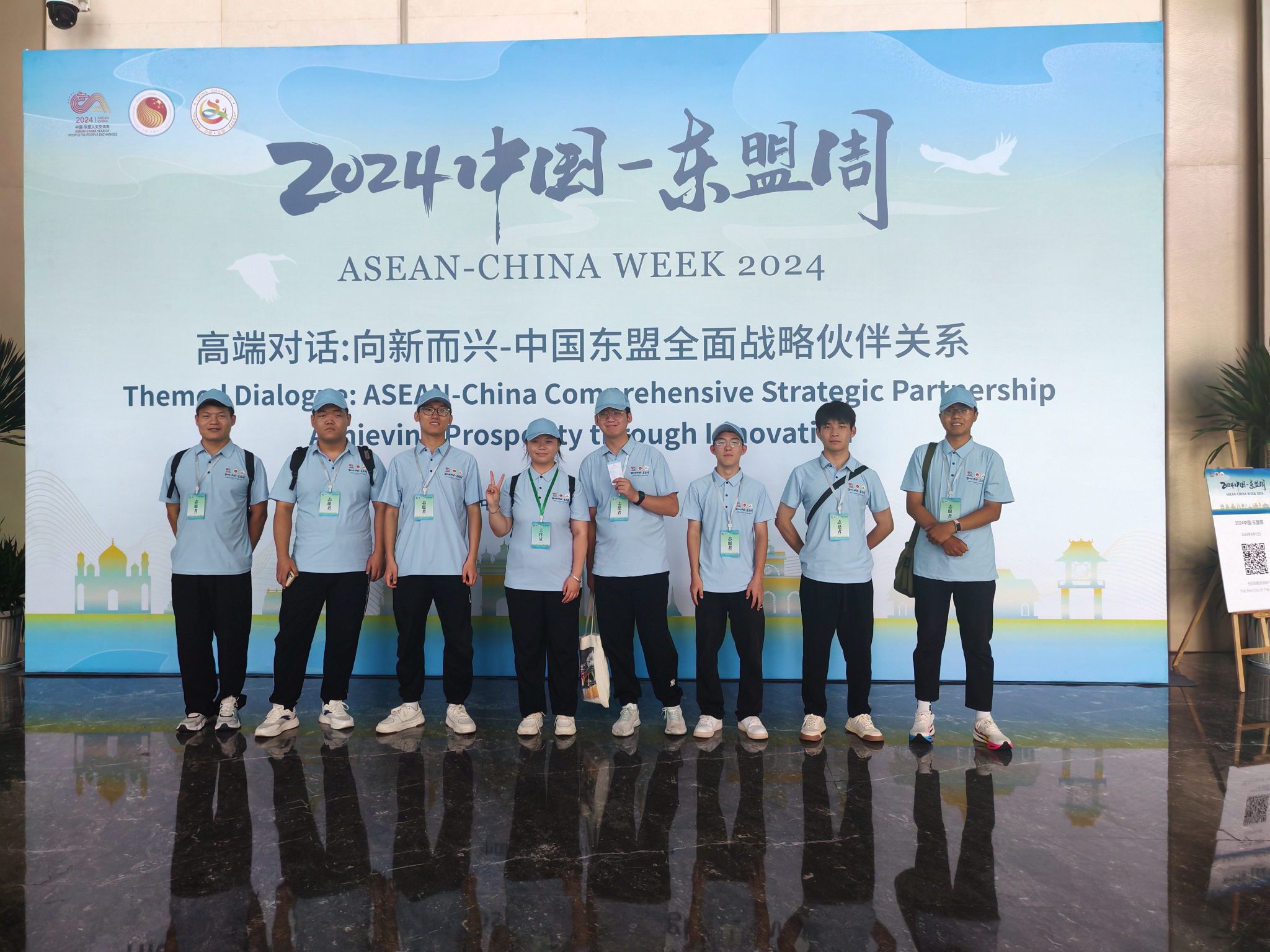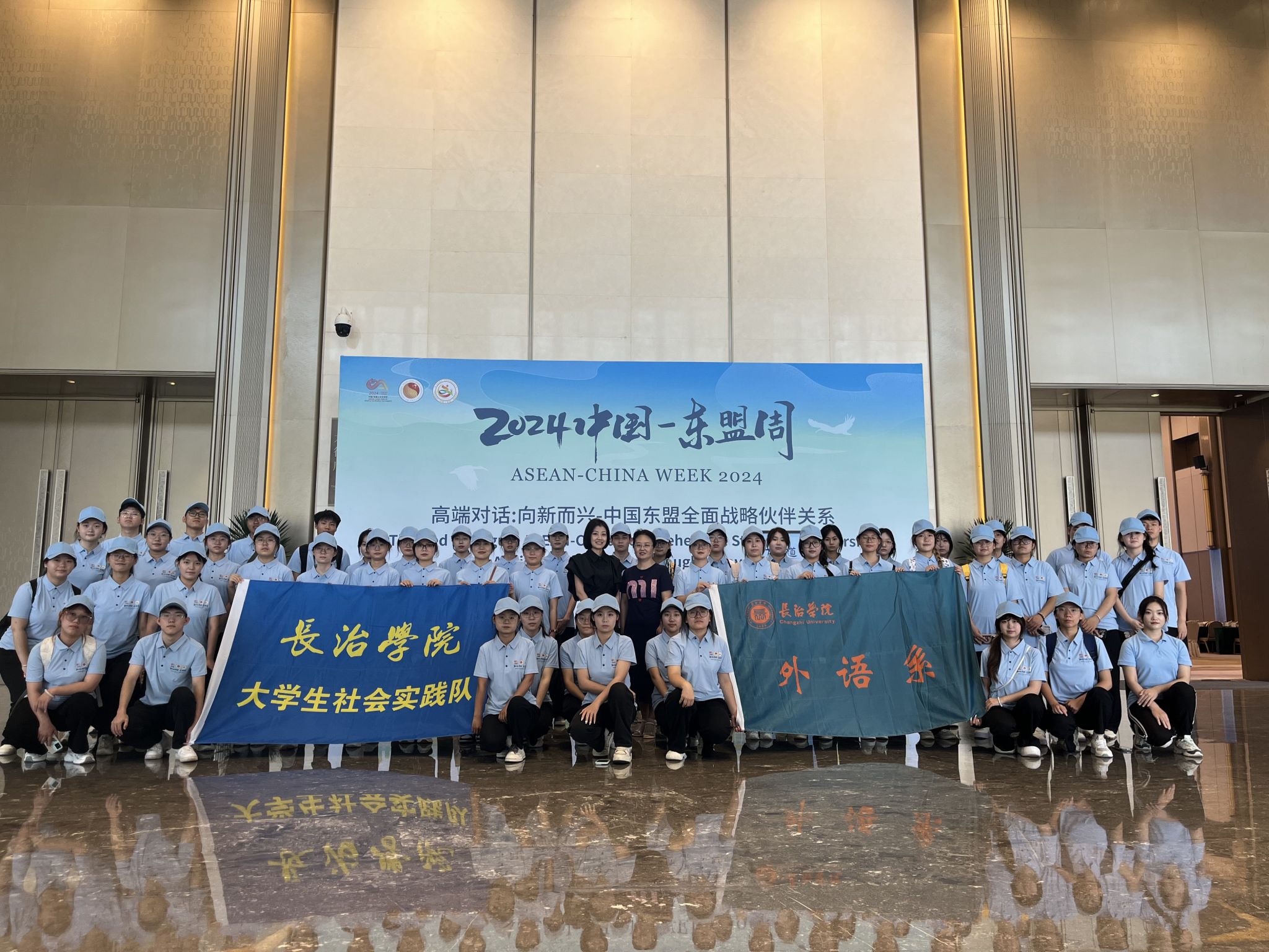 8月12日,“2024中国—东盟周”在长治市滨湖文旅中心城市阳台隆重开幕。beat365外语系50余名师生志愿者积极参与东盟—山西非遗文创展、中国—东盟电影嘉年华、高端对话、中国(山西)—东盟贸易投资推介会、中国(山西)—东盟青年暨文旅发展交流会等系列活动的会前筹备、现场翻译、会务引导等工作,热情欢迎远道而来的国际友人和各界嘉宾。