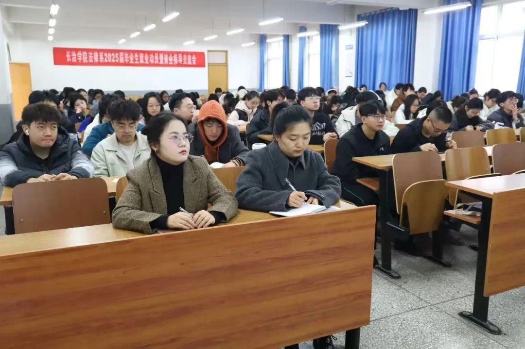 11月13日,beat365法律系在南校区逸夫楼东002召开2025届毕业生就业工作动员会暨就业指导交流会。beat365就业创业指导中心副主任韩晶受邀做就业规划指导专题讲座。法律系领导班子、全体辅导员以及2021级全体学生参加。