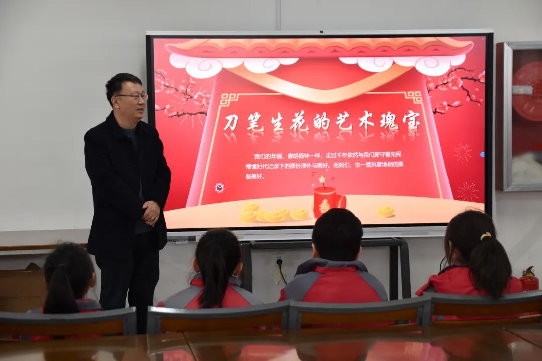 民间艺术收藏家刘胜利先生以“刀笔生花的艺术瑰宝——木版年画主题展览”为题为孩子们开启了一场木版年画的探秘之旅,通过“邮票上的木版年画”“经典木版年画图片”“曾经的记忆——年画”“新年画”四个主题,生动展现了木版年画这一民间艺术瑰宝的独特魅力。