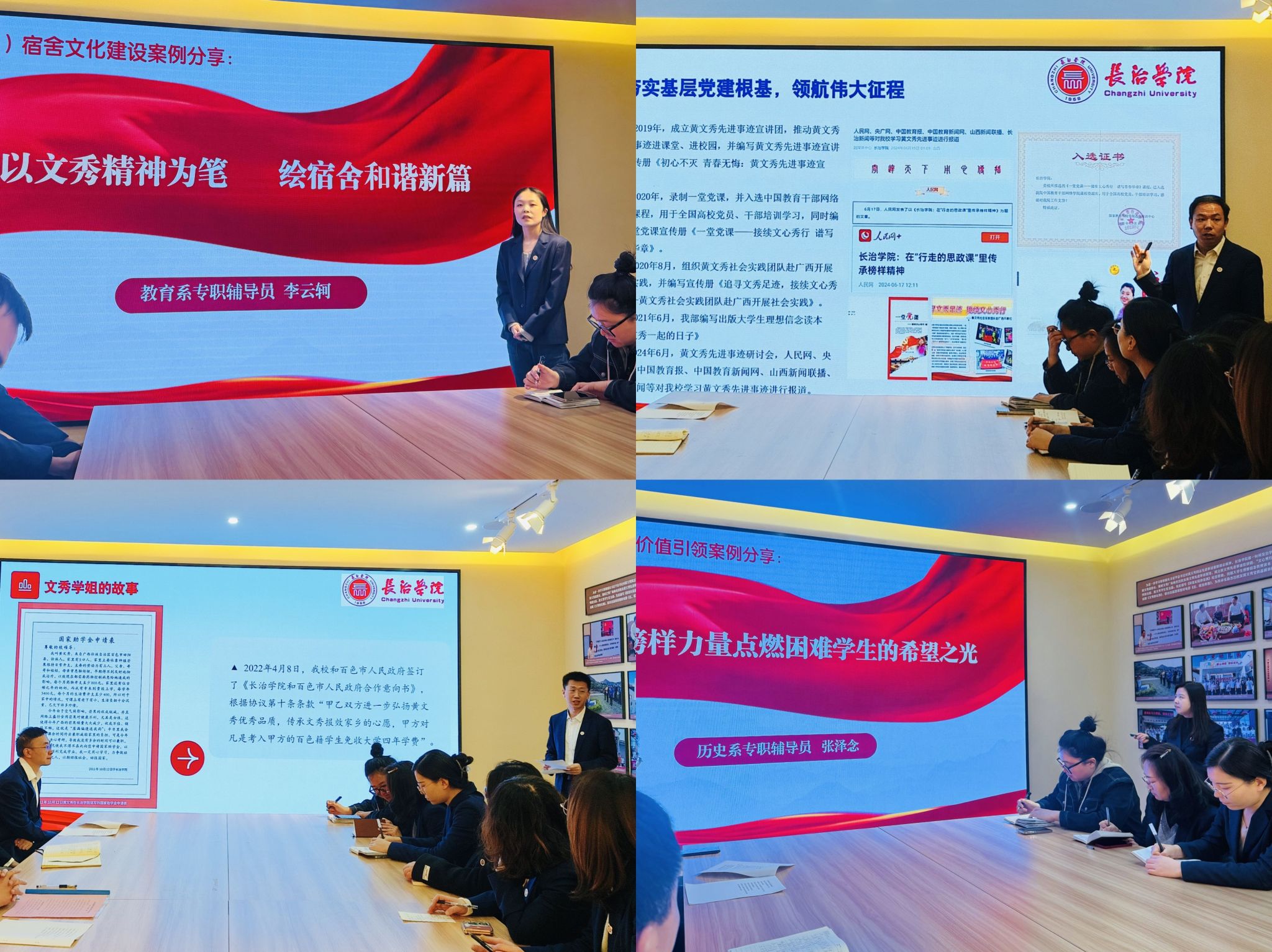 “追逐光”交流环节在文秀馆尾厅举行,与会辅导员围绕“如何将文秀事迹精神融入学生思想政治教育工作”展开深度研讨。马克思主义学院李振国以《以榜样精神为引领 筑牢党团根基 坚定入党初心》为题,分享了党建团建工作中激发学生使命感的创新实践;教育系李云轲结合宿舍文化建设案例,提出以身边榜样的优秀品质培育学生互助奉献的共同体意识;体育系韩泽伟通过资助育人实践,探讨了从“受助”到“助人”的感恩文化培育路径;历史系张泽念则聚焦思想价值引领,讲述了用榜样力量激励困难学生成长的暖心故事。现场气氛活跃,多元化的案例分享为辅导员职业化发展提供了交流平台,同时也为思政工作开展提供了可借鉴的新思路。