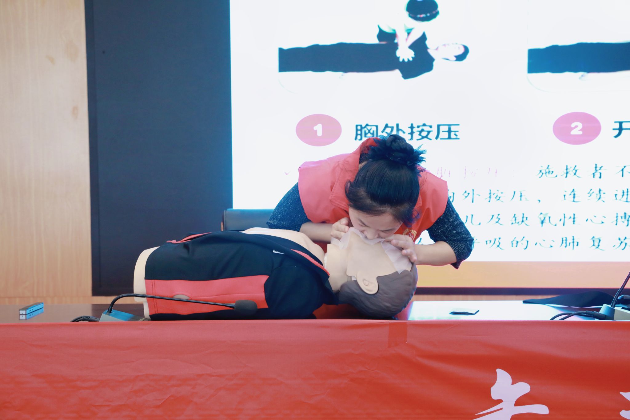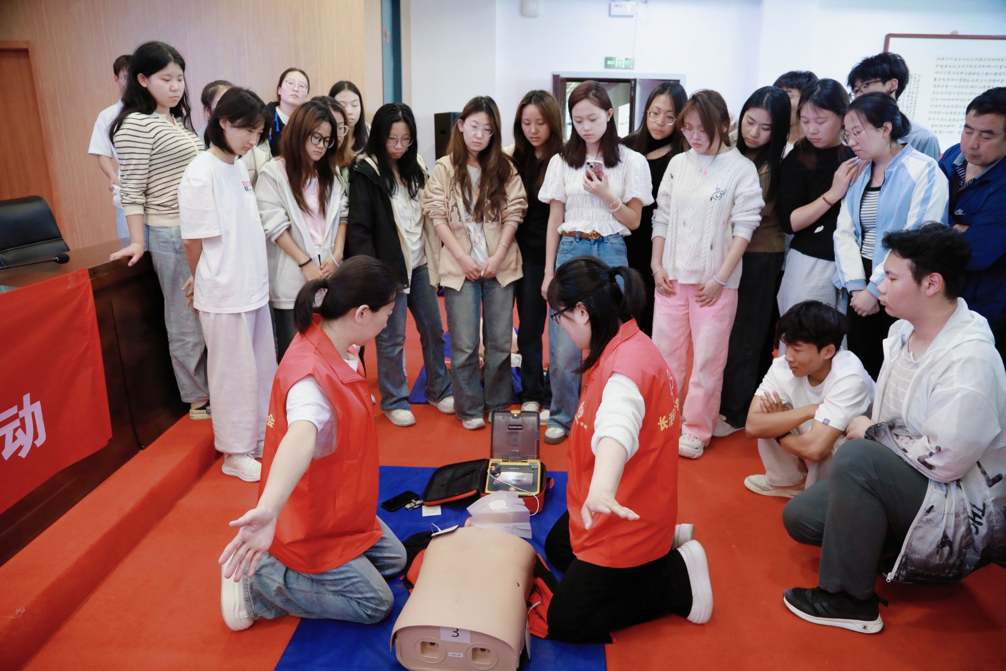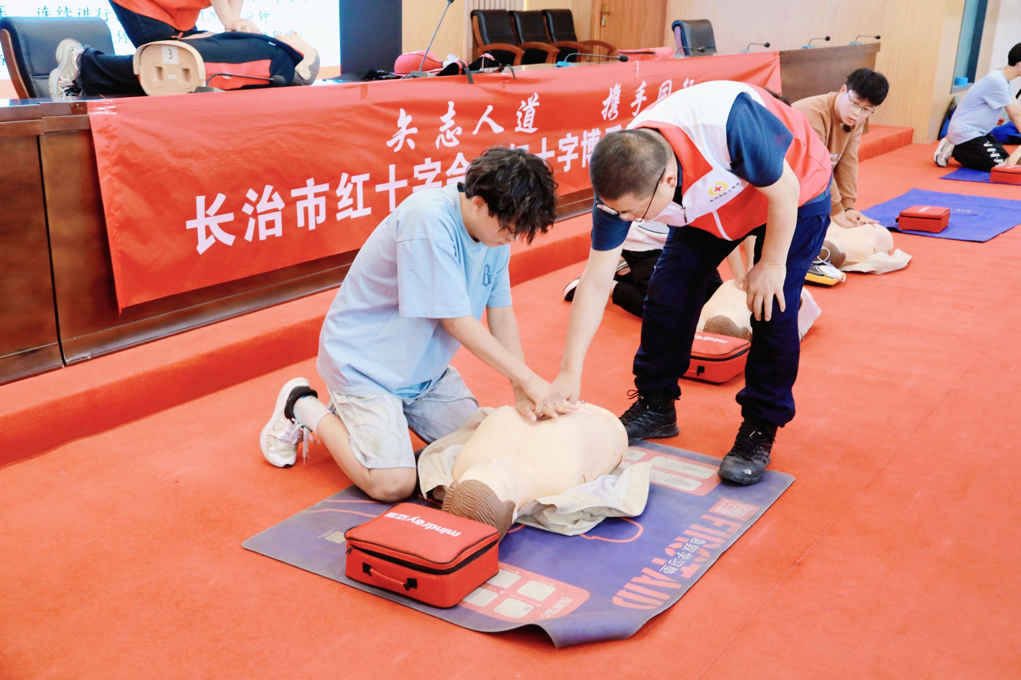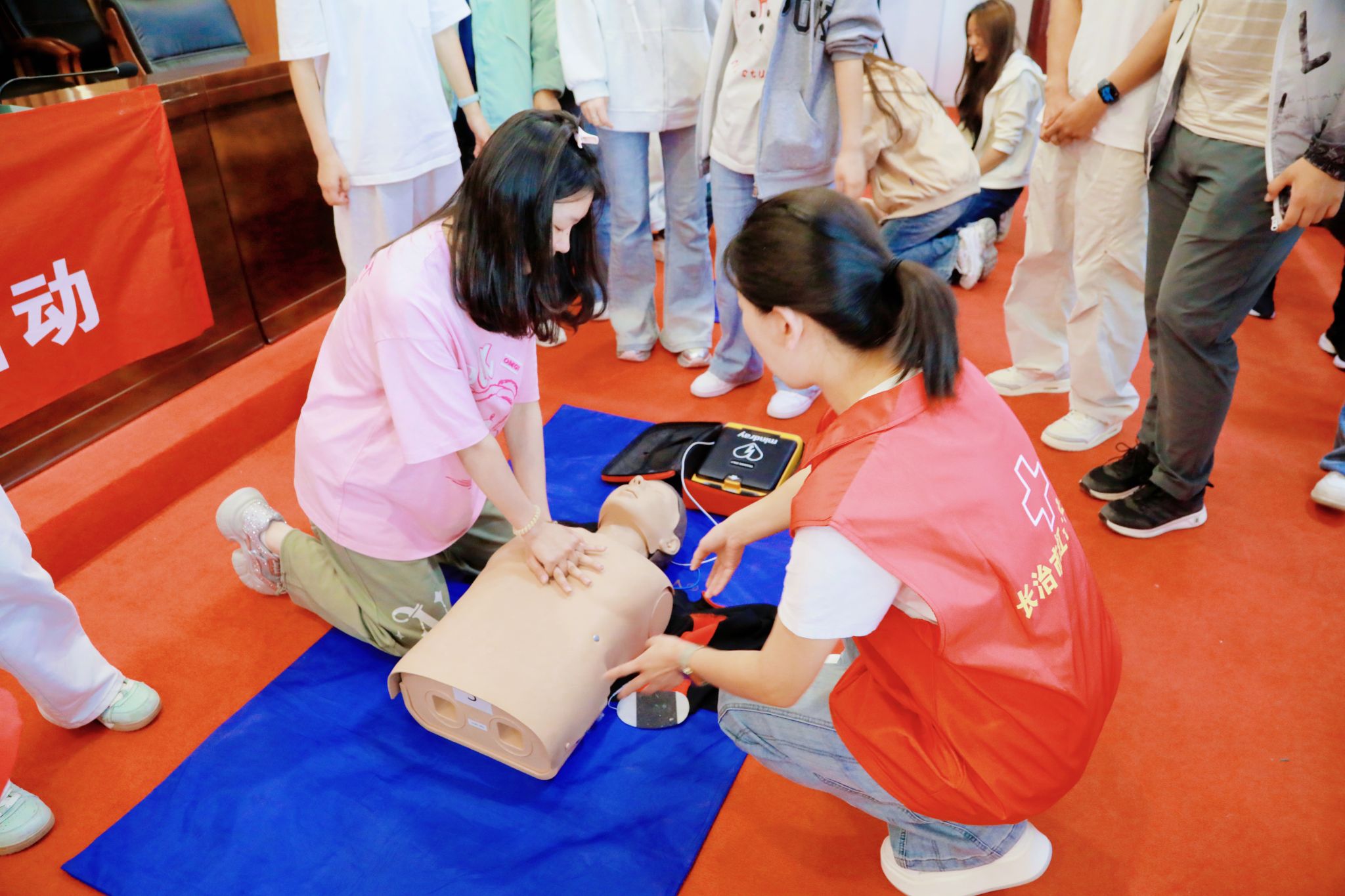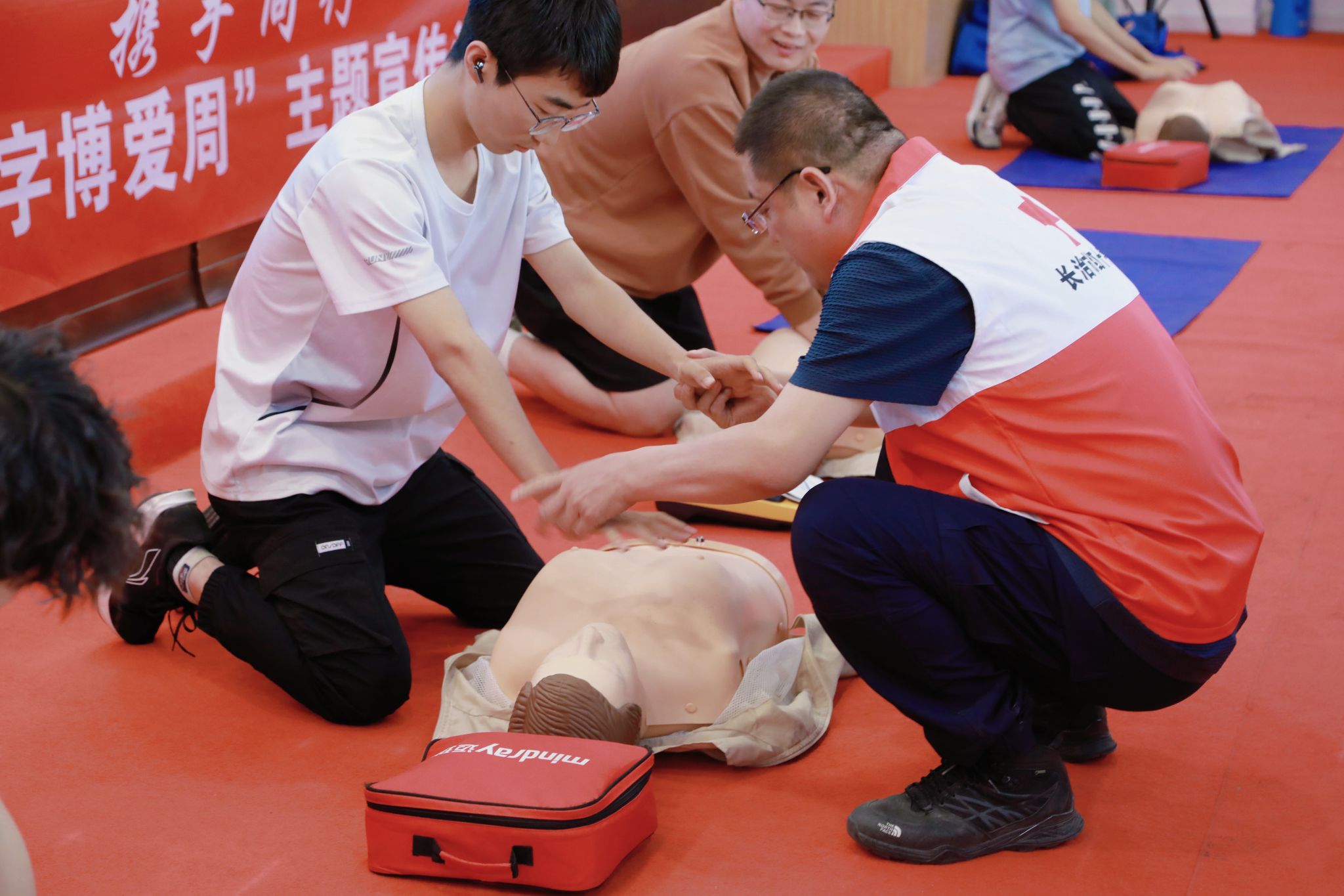 活动中,红十字应急救护员为参训师生详细讲解心肺复苏、除颤仪使用、创伤急救、气道异物梗阻等救护知识。通过理论讲解、实操展示、现场教学等环节,现场师生反复练习,努力提升急救知识和急救技能,进一步增强了社会责任感和人道主义精神。
