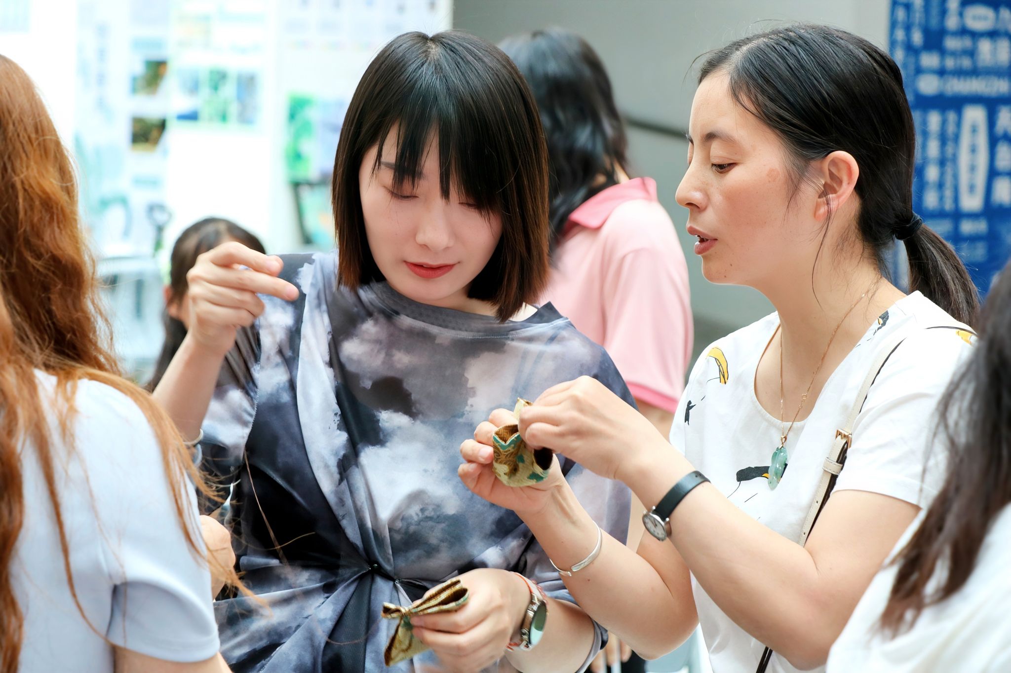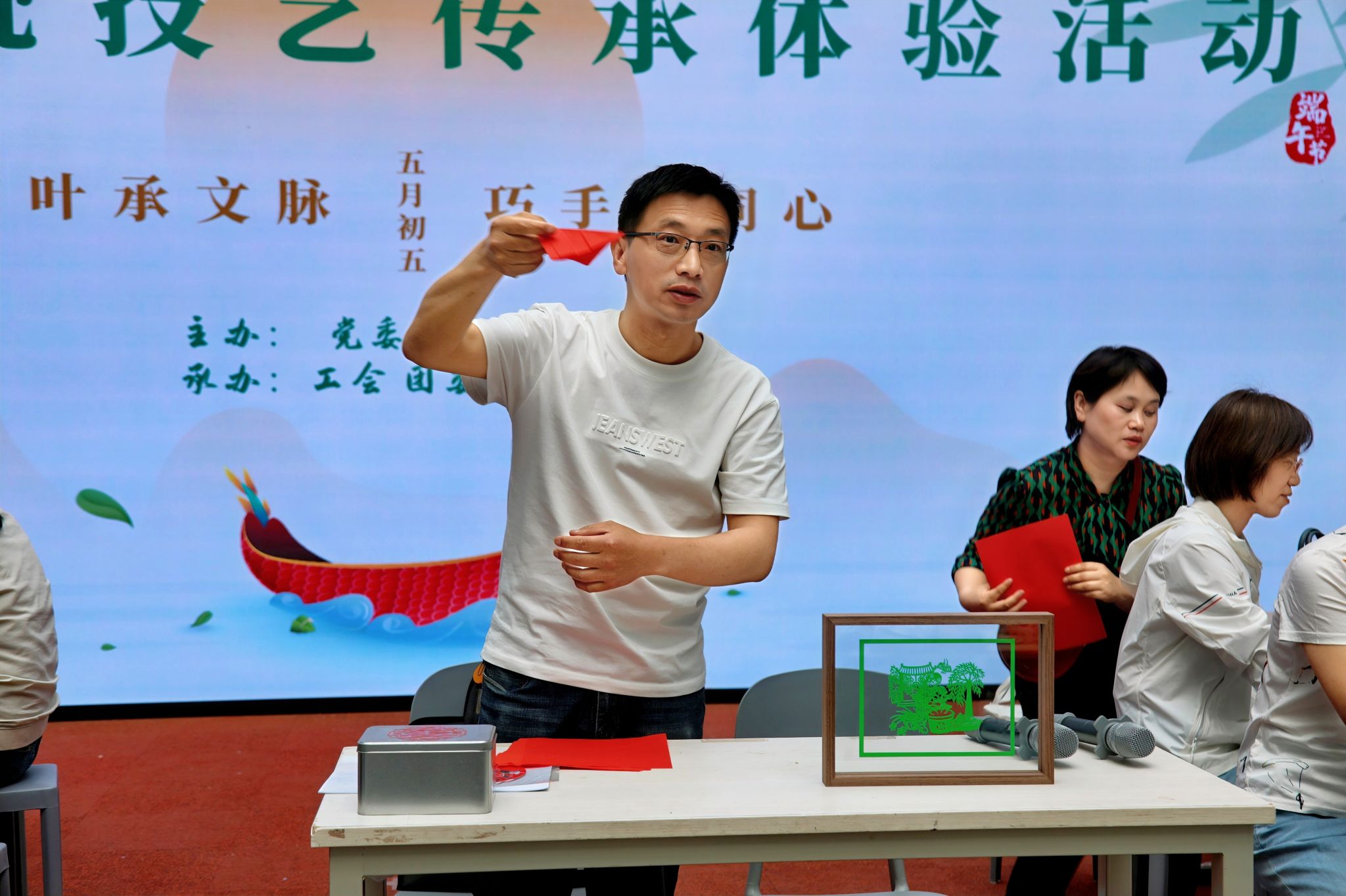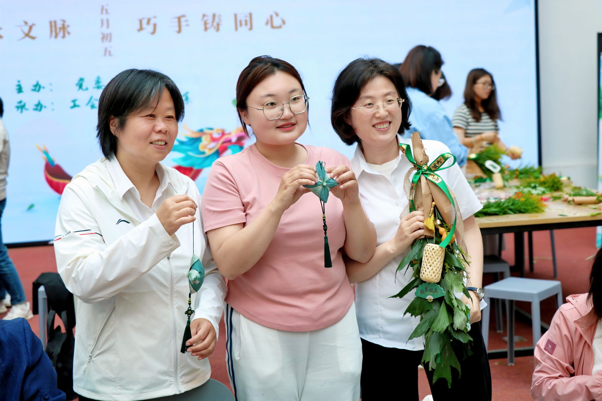 在端午佳节来临之际,5月27日下午,一场别开生面的中华传统技艺传承体验活动在beat365南校区3号教学楼举行。活动以“粽叶承文脉,巧手铸同心”为主题,通过沉浸式非遗体验,让教职工们在实践中感受中华优秀传统文化的魅力,进一步铸牢中华民族共同体意识。活动由党委统战部主办,校工会、校团委、美术系共同承办。