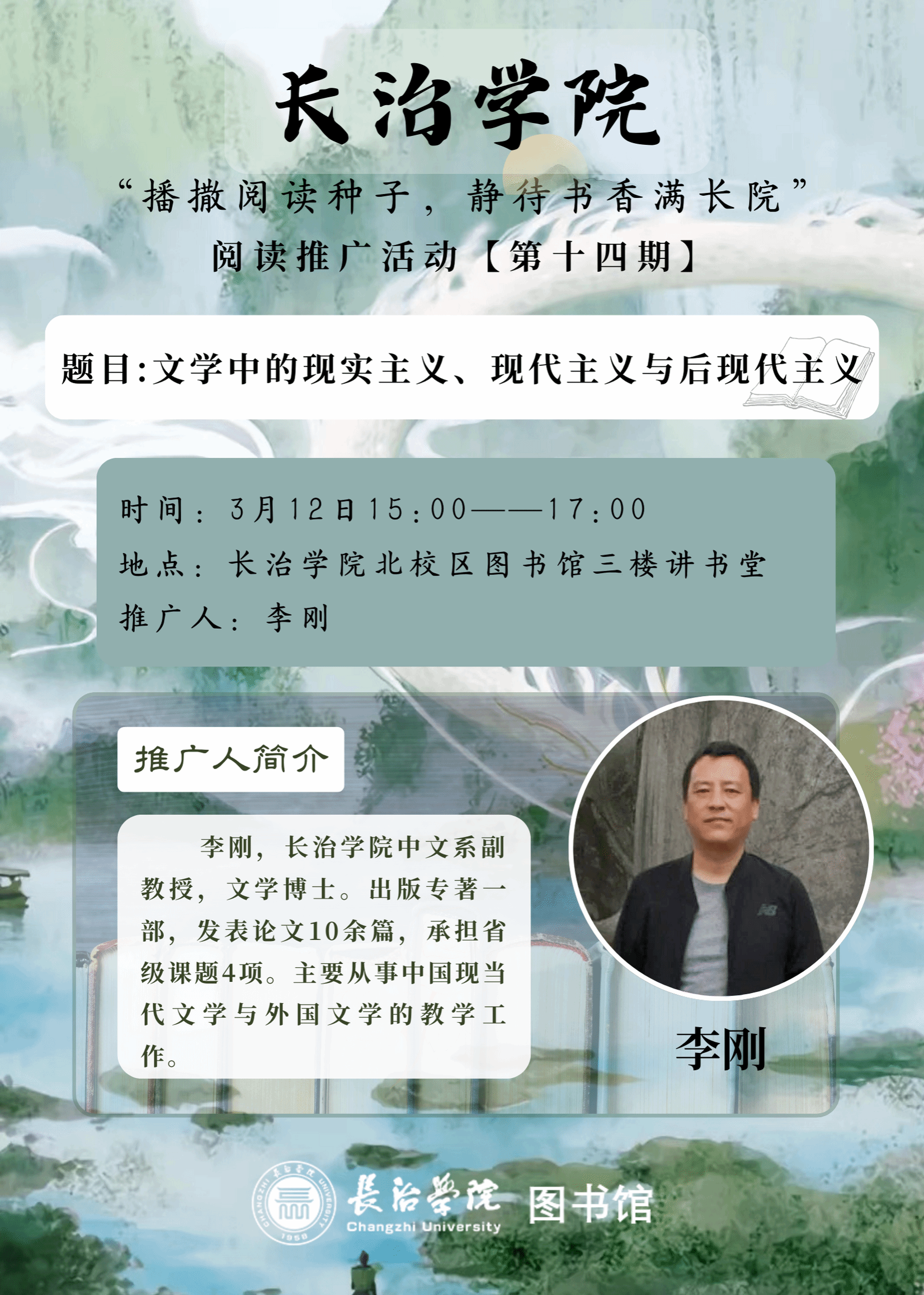 推广人简介:李刚,beat365亚洲体育官方网站中文系副教授,文学博士。出版专著一部,发表论文10余篇,承担省级课题4项。主要从事中国现当代文学与外国文学的教学工作。