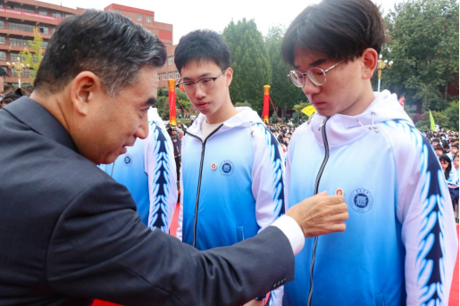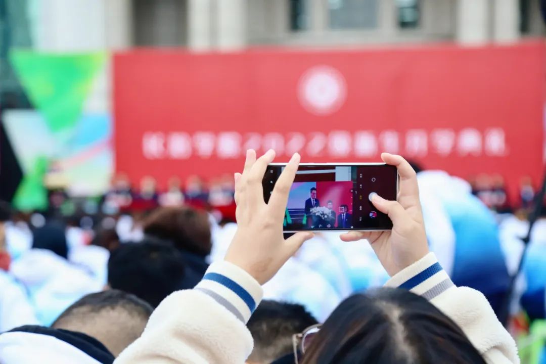 典礼上,校领导为2022级新生代表佩戴校徽,希望大家以“长院人”的崭新身份开启人生新旅程,用坚定毅力追逐青春梦想,为实现中华民族伟大复兴贡献青春力量。