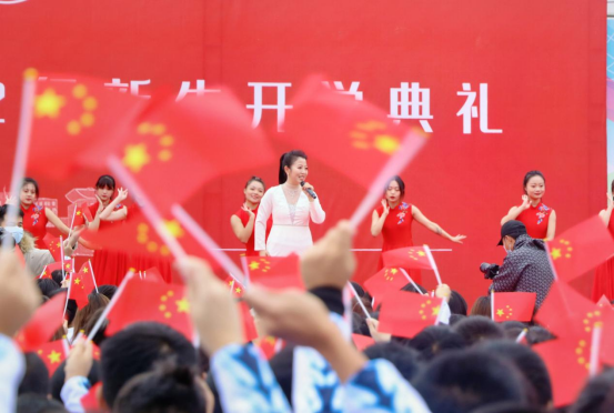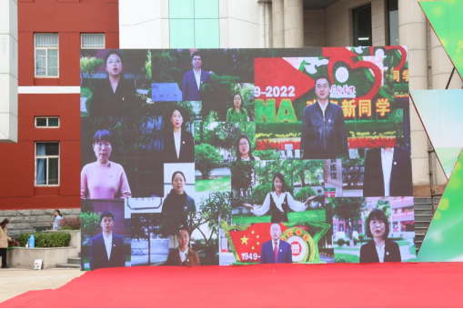 典礼现场播放了教师代表、后勤保卫工作人员代表和高年级学生代表对新生的寄语视频。