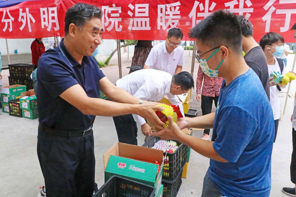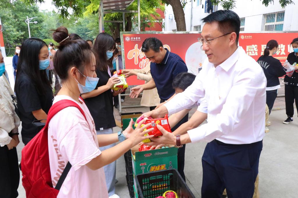 中秋佳节送关怀,浓浓真情暖人心。9月8日上午,在中秋佳节即将来临之际,党委书记郝勇东,校长曹景川,党委副书记宋志燕到南北校区走访慰问在校师生,为大家送上节日祝福和慰问品。学工部、团委等部门负责人陪同走访。