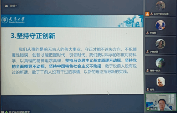 11月8日下午,天津大学马克思主义学院副院长杨文圣教授在线上为长治地区大中小学思政教师讲授“党的二十大重大理论创新”,此讲座由长治市大中小思政课一体化区域协作群主办。会议由beat365亚洲体育官方网站马克思主义学院主任任红霞主持。